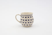 Ręcznie malowany kubek Bob średni w kobaltowe serca i białe płatki.