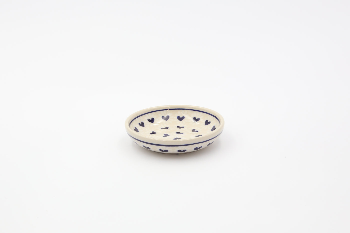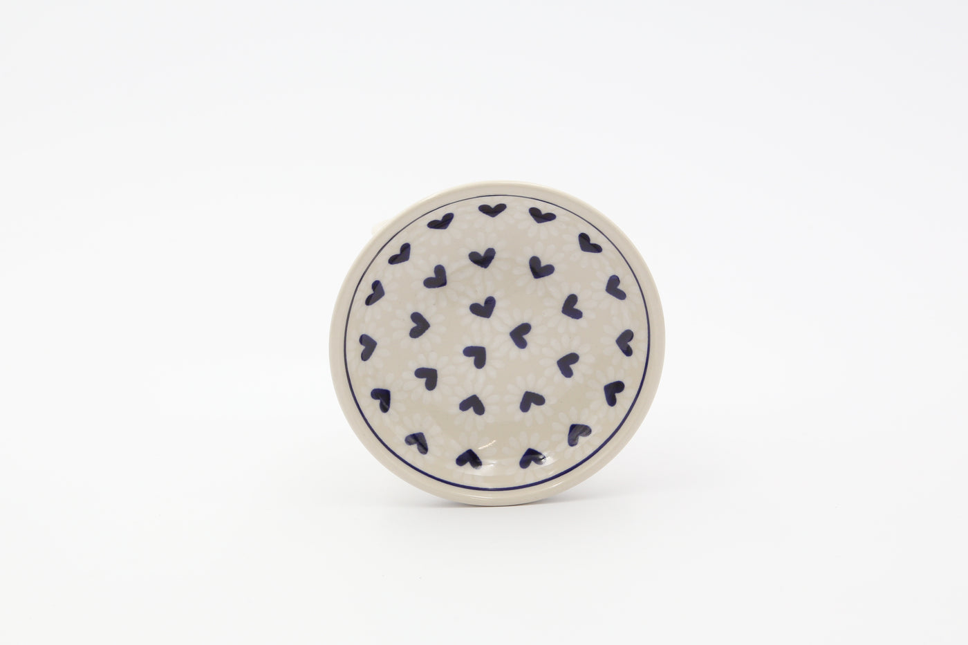 Ręcznie malowana mała miseczka Jaś w kobaltowe serca i białe płatki.Numer dekoracji: PS 021Kształt: Miseczka Jaś / małaWysokość: 2,5 cm Średnica:...
